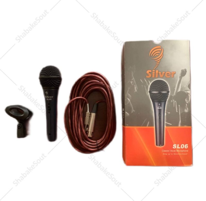 میکروفن سیلور مدل SL06بیش از یک دهه می باشد که سری میکروفن های کبالت در ایران به فروش می رود.با توجه به با ساختار و نوع صدای این میکروفن یکی از کالاهای بسیار جذاب در ایران می باشد. این نوع میکروفنها که با برند معروف سیلور توزیع می گردد یکی از پر فروش ترین میکروفنهای داینامیک حرفه ای محسوب می شود. این میکروفن با کپسول حرفه ای و صدایی شفاف یکی از جذابترین نوع این میکروفن هاست.